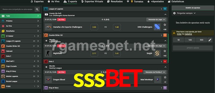 O sssbet oferece uma grande seleção de opções de apostas em e-sports com probabilidades competitivas